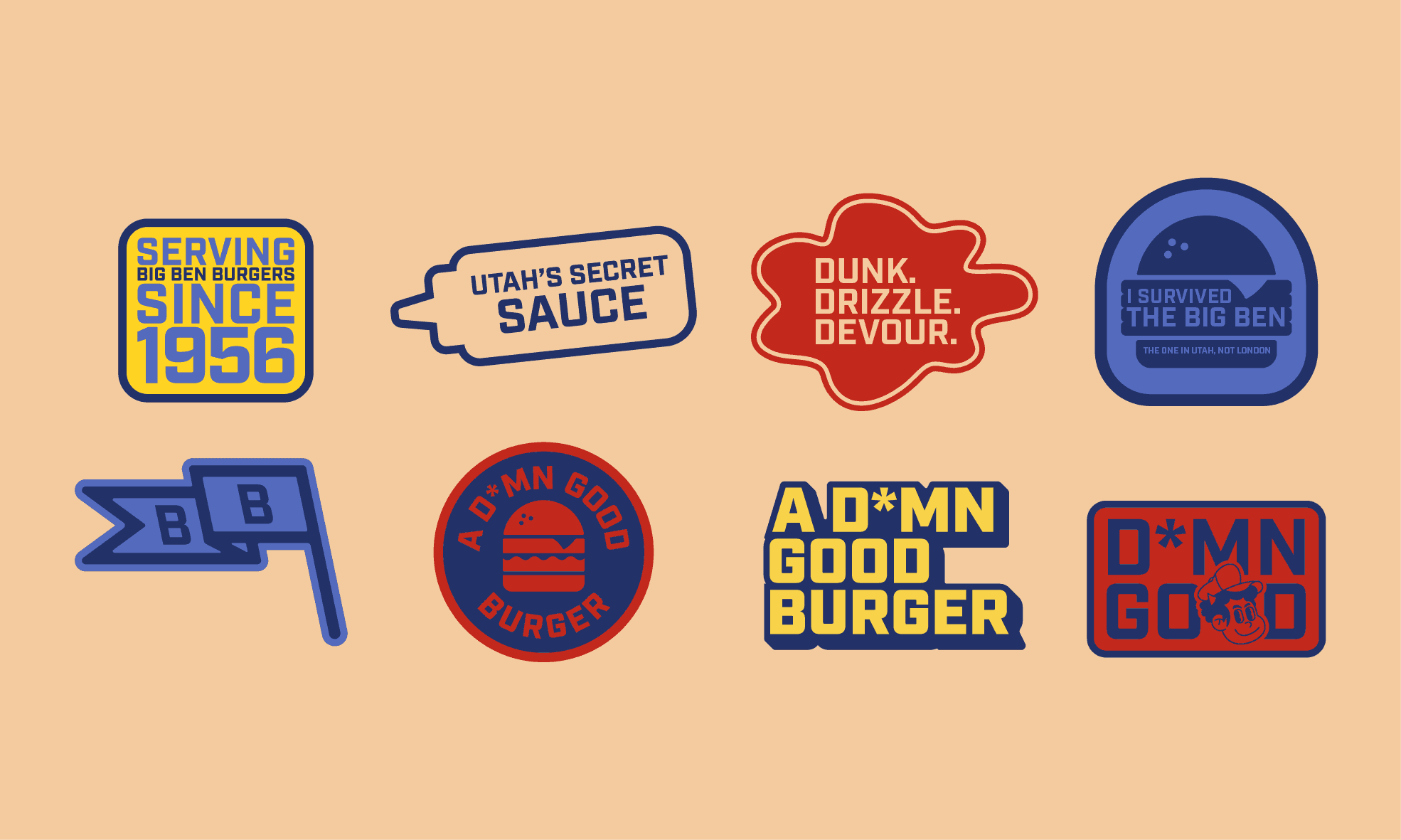 Like mentioned in the paragraph before, the majority of these badge designs and secondary elements poke fun at the "utah culture" atmosphere that surrounds the original location of the Burger Bar.