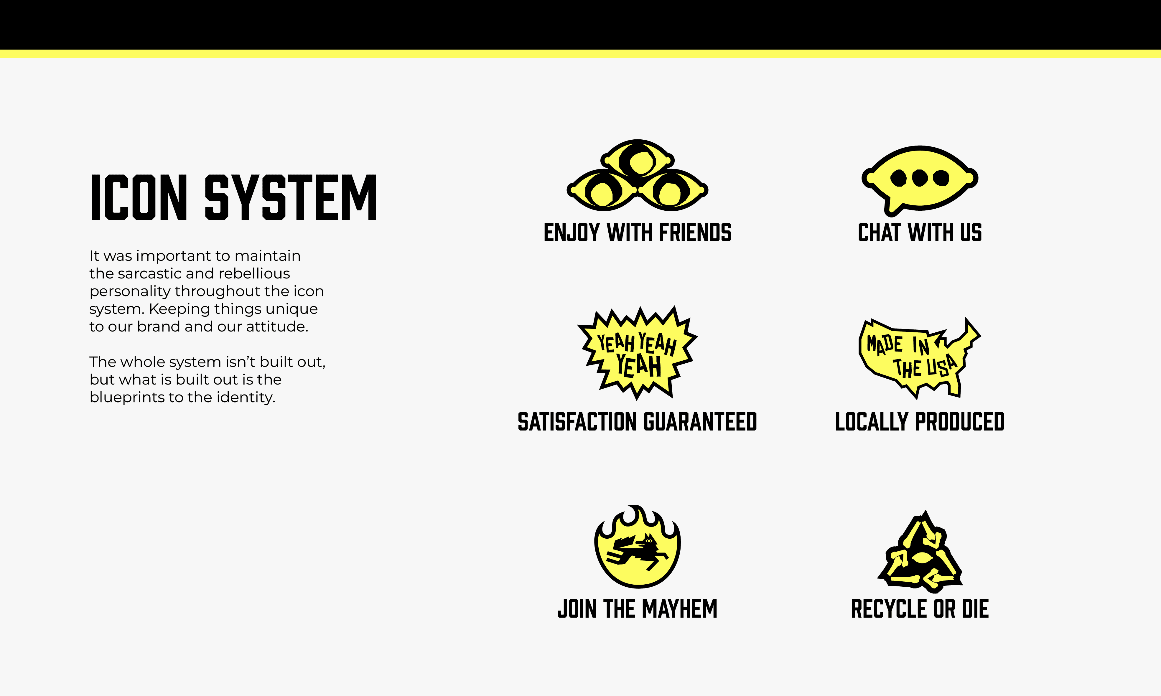One of the things that was done to approach this brand's identity and really dive head first was study early 00's skateboard graphics, slang, street art. Things that we could swap out some element with a lemon or some kind of commentary that pushed this attitude.