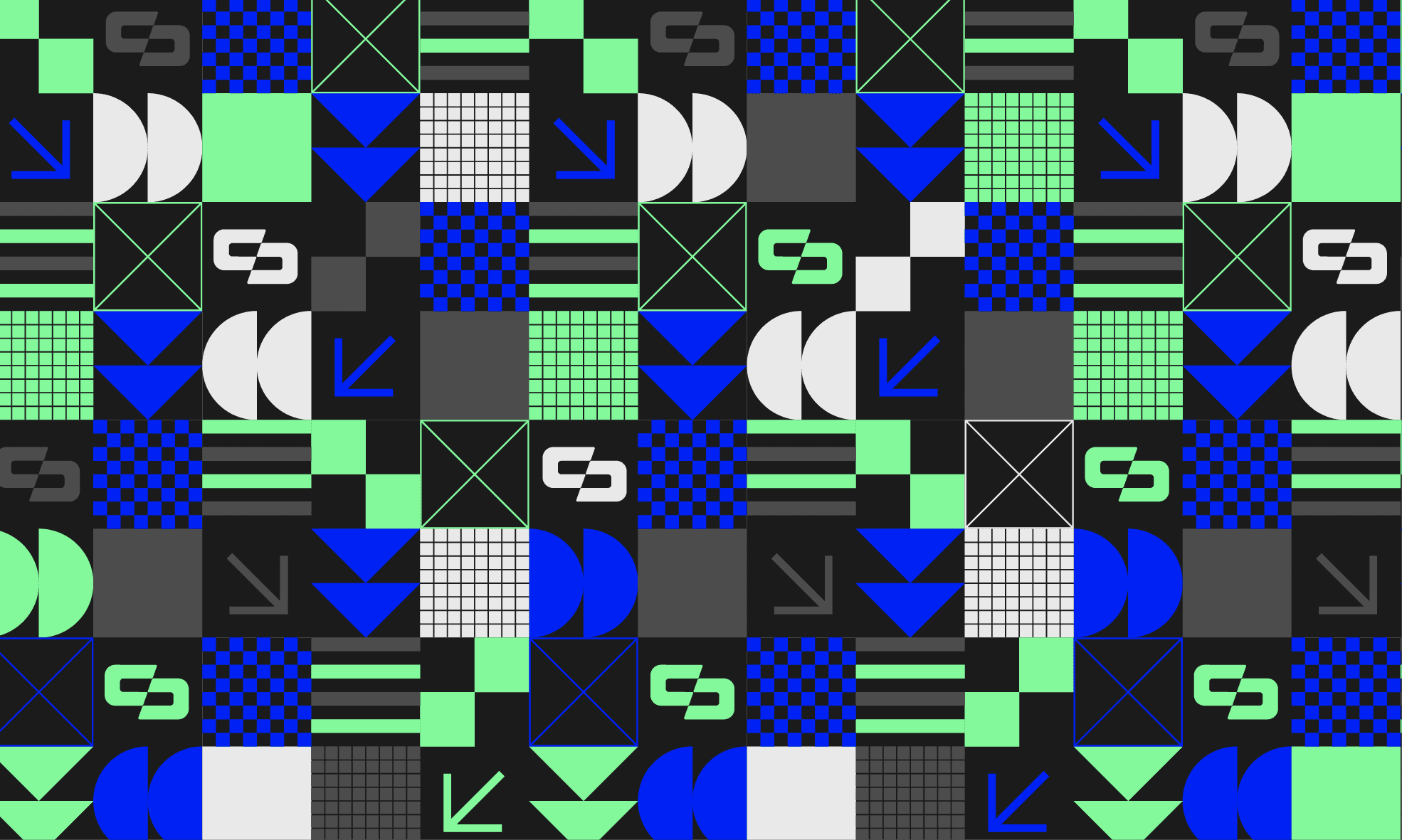 This pattern fully demonstrates how the brand colors, icons, and other elements can interact with each other to form a complete pattern. While this is one way the pattern could be used, it isn't the only way.