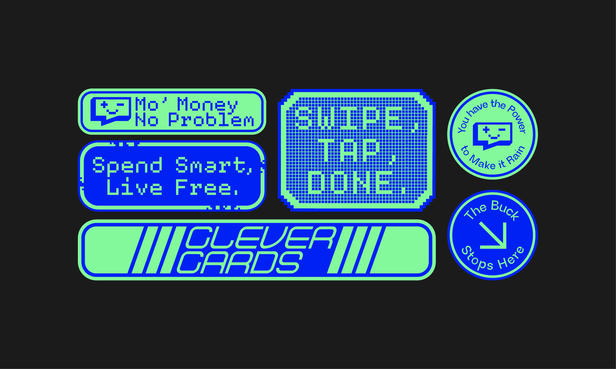 Creating this visual identity came with understanding the industry and how CleverCards could stand out. The best way they could do that was through quirky commentary and sleek design that could be used throughout the brand in "clever" ways.