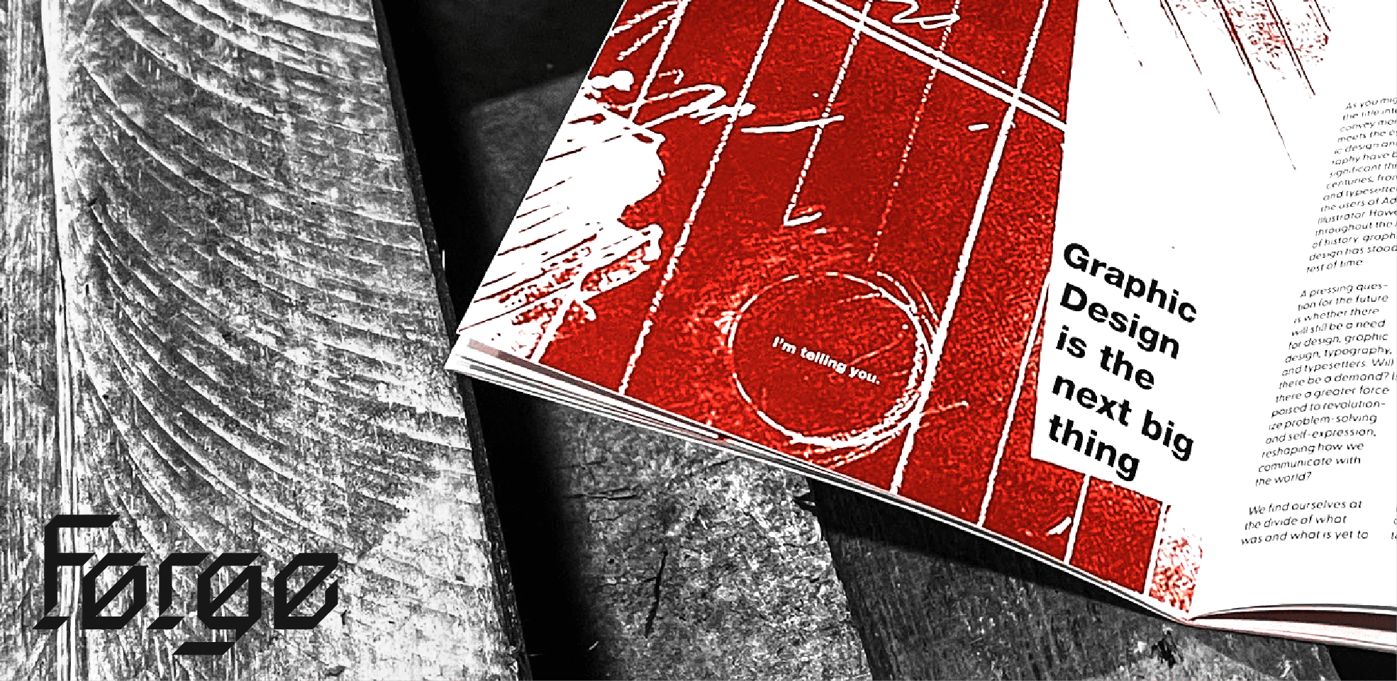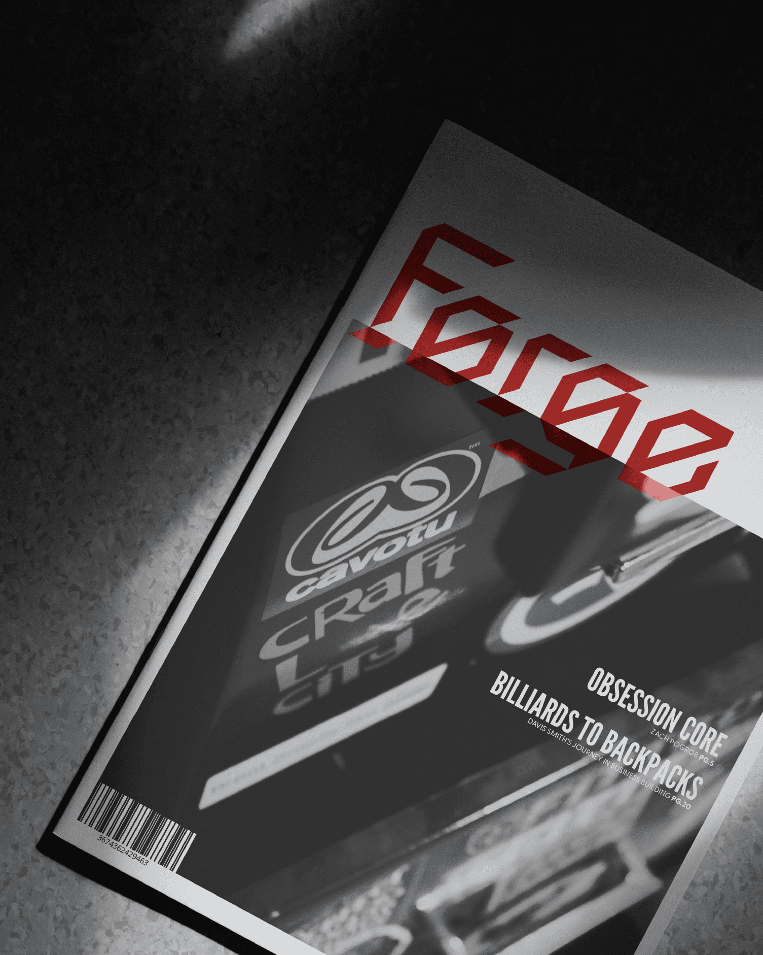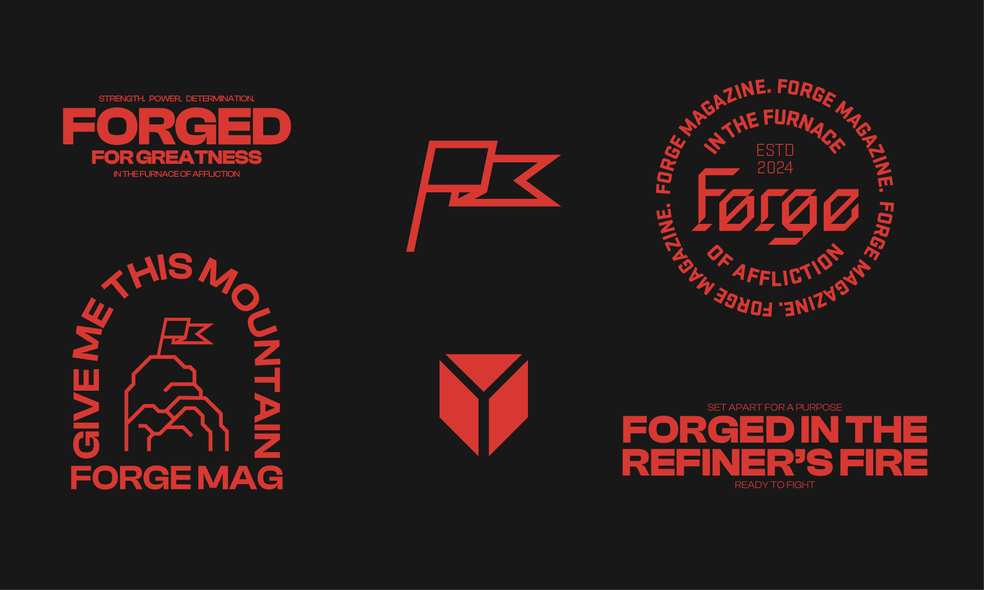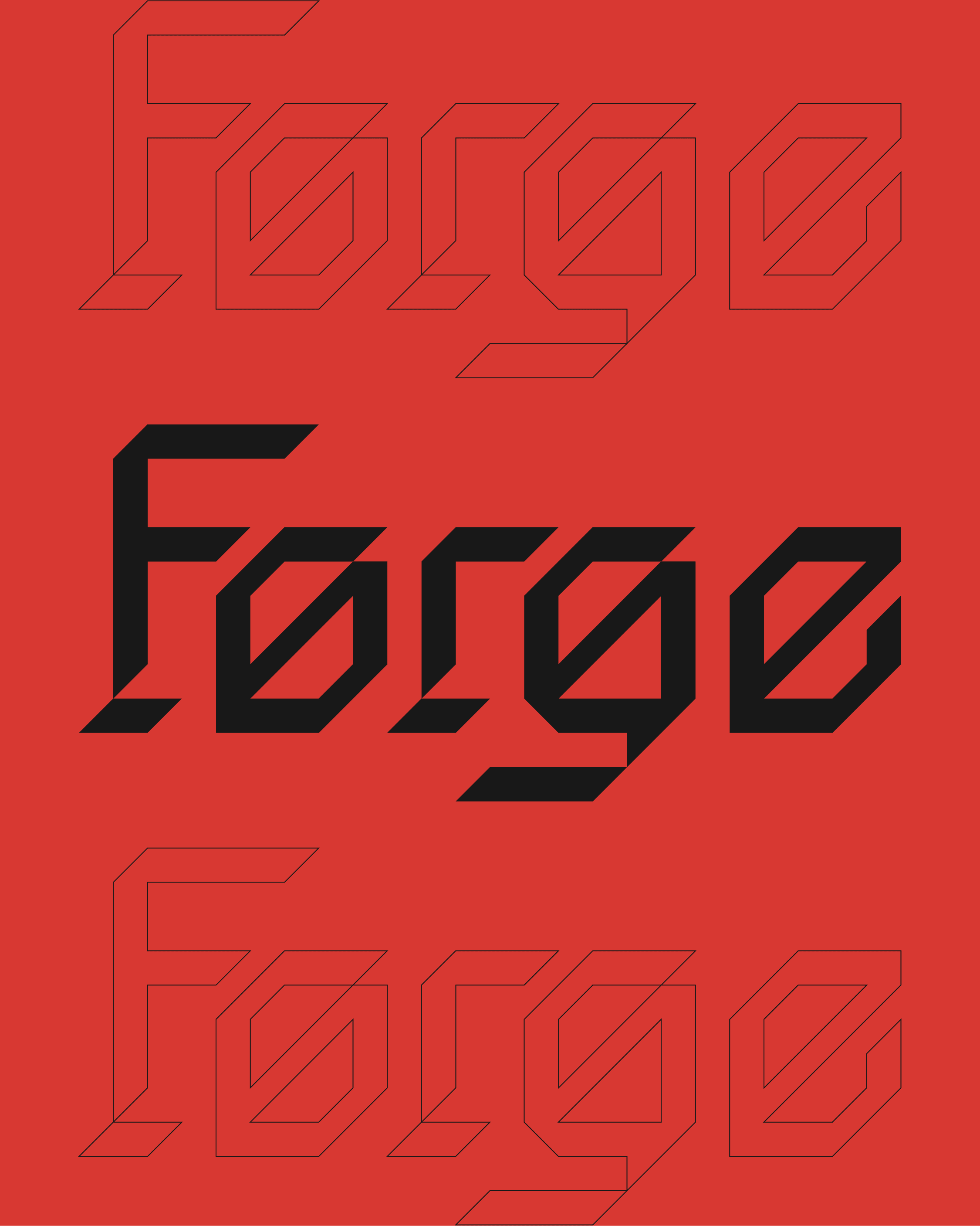 The custom type system that we created featured letterforms that are sharp and bold. This typeface, as apart of the Forge brand, will be featured only as a display typeface providing a way to connect small parts of the magazine or other elements to the main logo. Headlines and other layout items will be featured in a different typeface.